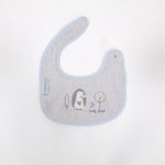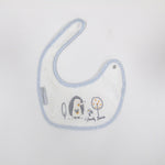 Colorato e simpatico bavaglino neonato in spugna impermeabile con ricamo di allegri personaggi.