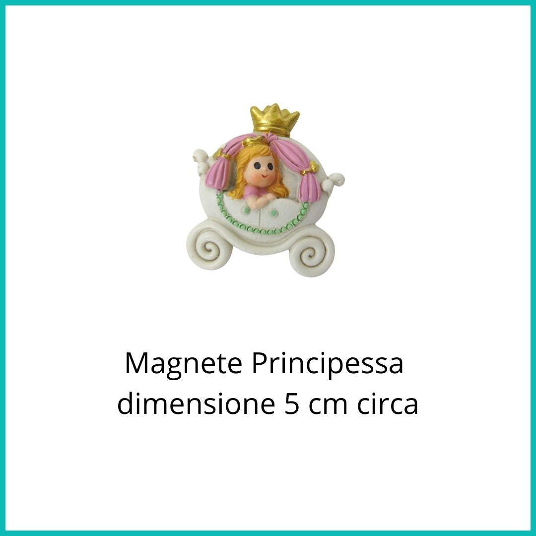 Il magnete carrozza principessa bimba è realizzato in resina e di h. 5 cm circa. Perfetto sia per nascita che battesimo.