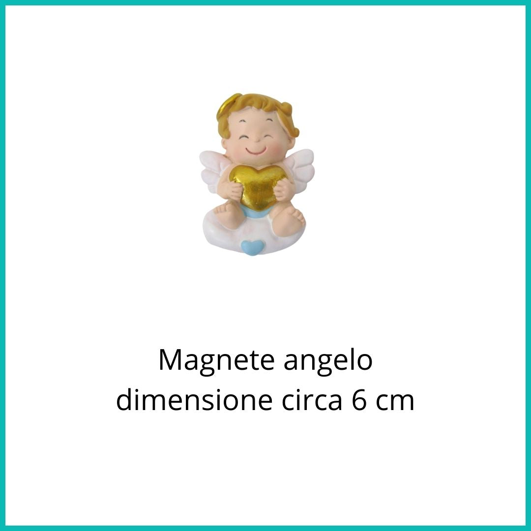 Il magnete angelo bimbo è realizzato in resina e di h. 6 cm circa. Perfetto sia per nascita che battesimo.