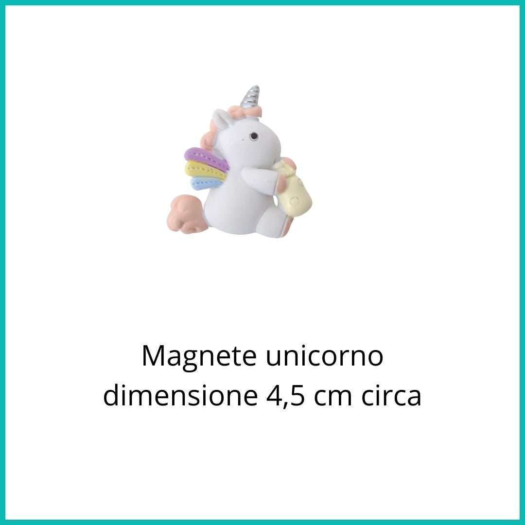 Il magnete Unicorno bimba è realizzato in resina e di h. 5 cm circa. Perfetto sia per nascita che battesimo.